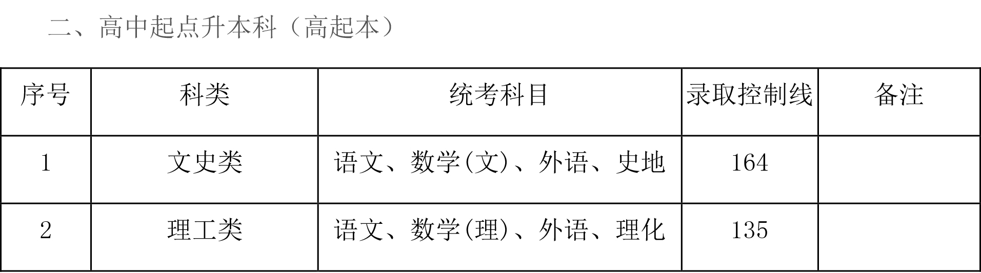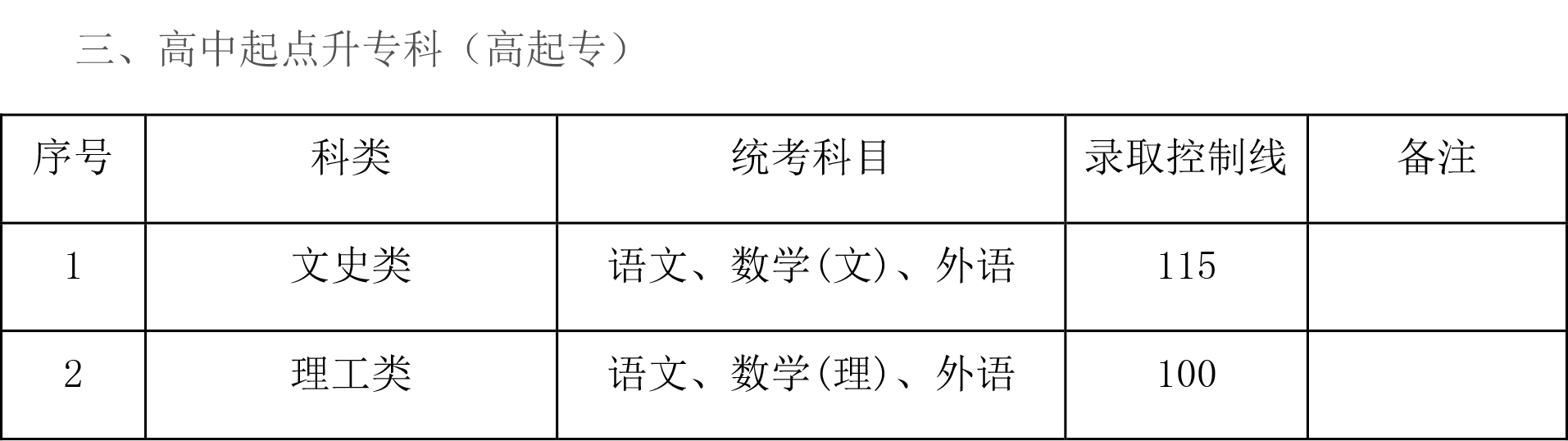 2.高起专体育类专业最低控制分数线不低于相应招生科类的70%,专业加试成绩必须合格。