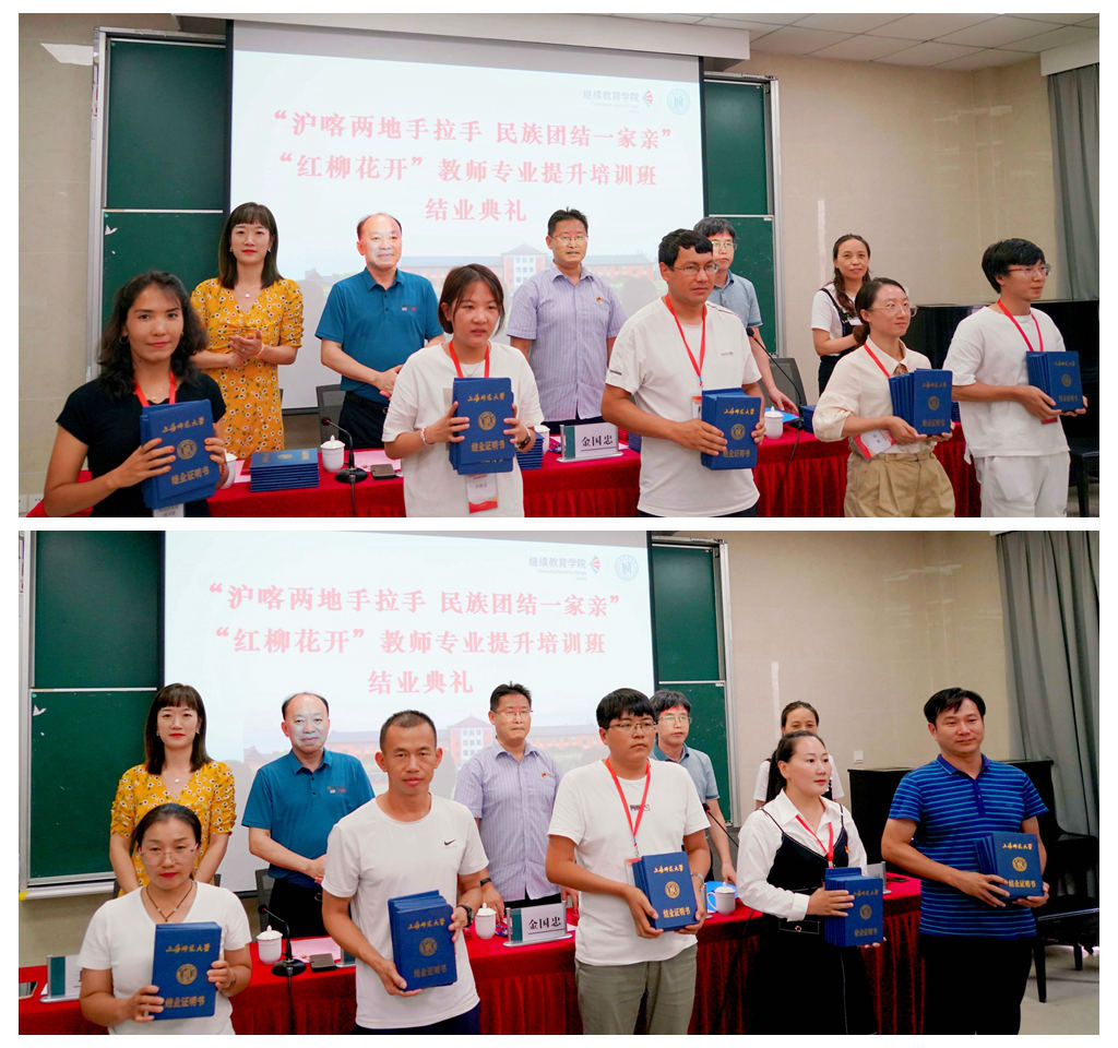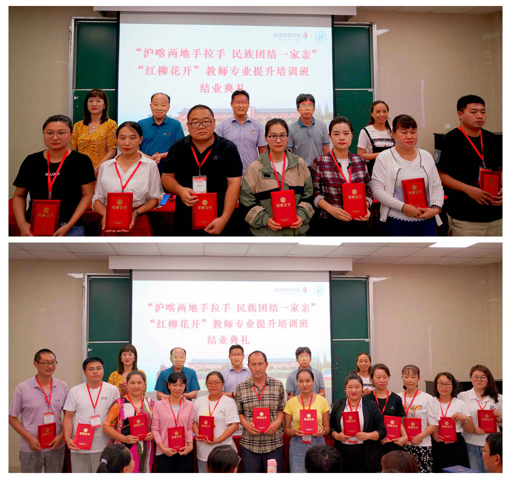 “红柳花开季,教学相长时。浓浓巴楚情,再会当有期。”希望研修班可以持续的开展下去,更希望在不久的将来,我们还有相聚的机会,祝愿沪喀两地的友谊地久天长!结业典礼在一片热烈的掌声中圆满结束。