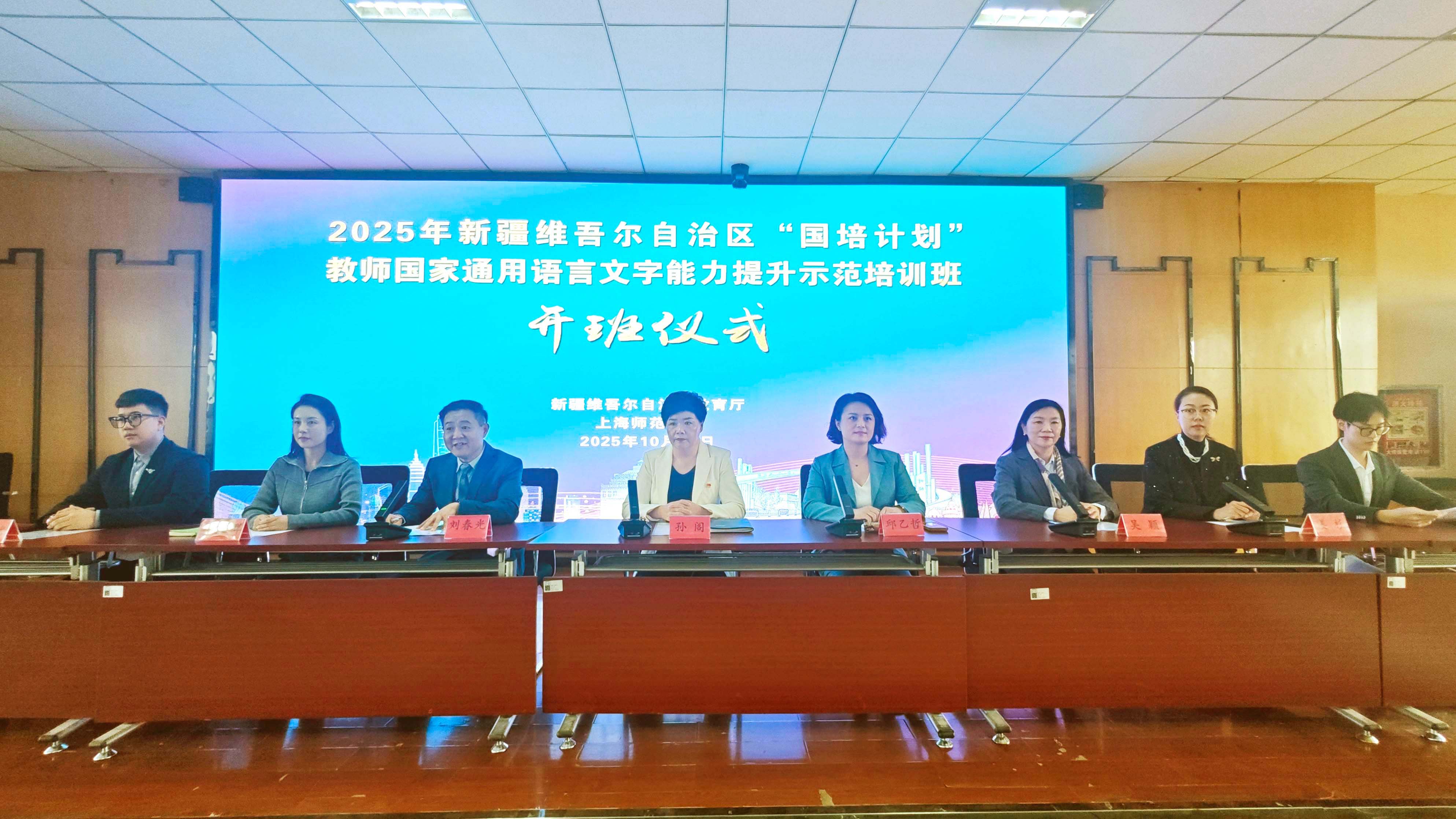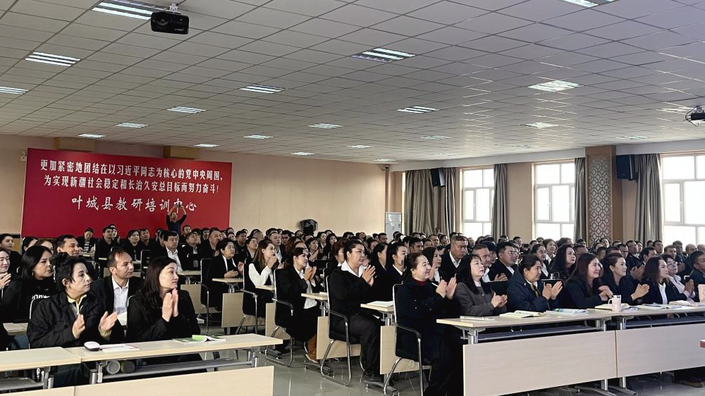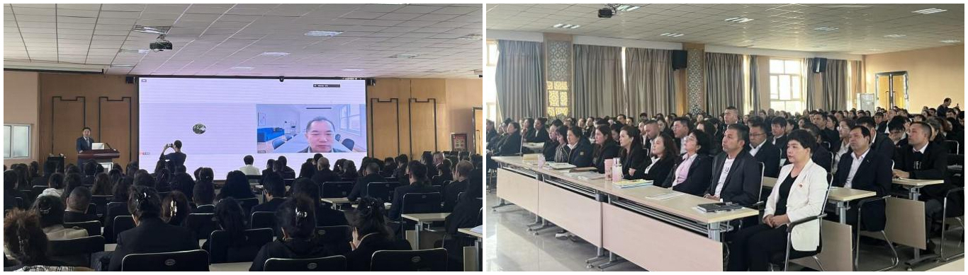 10月19日,为落实习近平总书记在新疆维吾尔自治区成立70周年庆祝大会讲话精神,学校传承教育援疆、文化润疆的优良传统,发挥学校教师教育特色和国家语言文字推广基地(新葡的京集团35222vip)的优势,由新葡的京集团35222vip组织申报,国家语言文字推广基地(新葡的京集团35222vip)、新葡的京集团35222vip对外汉语学院承办的“2025年新疆维吾尔自治区‘国培计划’——教师国家通用语言文字能力提升示范培训班”开班仪式在喀什地区叶城县教研培训中心报告厅顺利举行。叶城县教研培训中心党支部书记孙阁,新葡的京集团35222vip教务处副处长、语委办主任邱乙哲,新葡的京集团35222vip办公室主任徐立群,国家语言文字推广基地(新葡的京集团35222vip)“国培项目”培训教师吴颖、姜杉、王柯然、朱昊华、贺桐及来自叶城县各中小学参加本次培训的250名学员出席开班仪式。开班仪式由该“国培计划”项目执行负责人、对外汉语学院刘春光副教授主持。